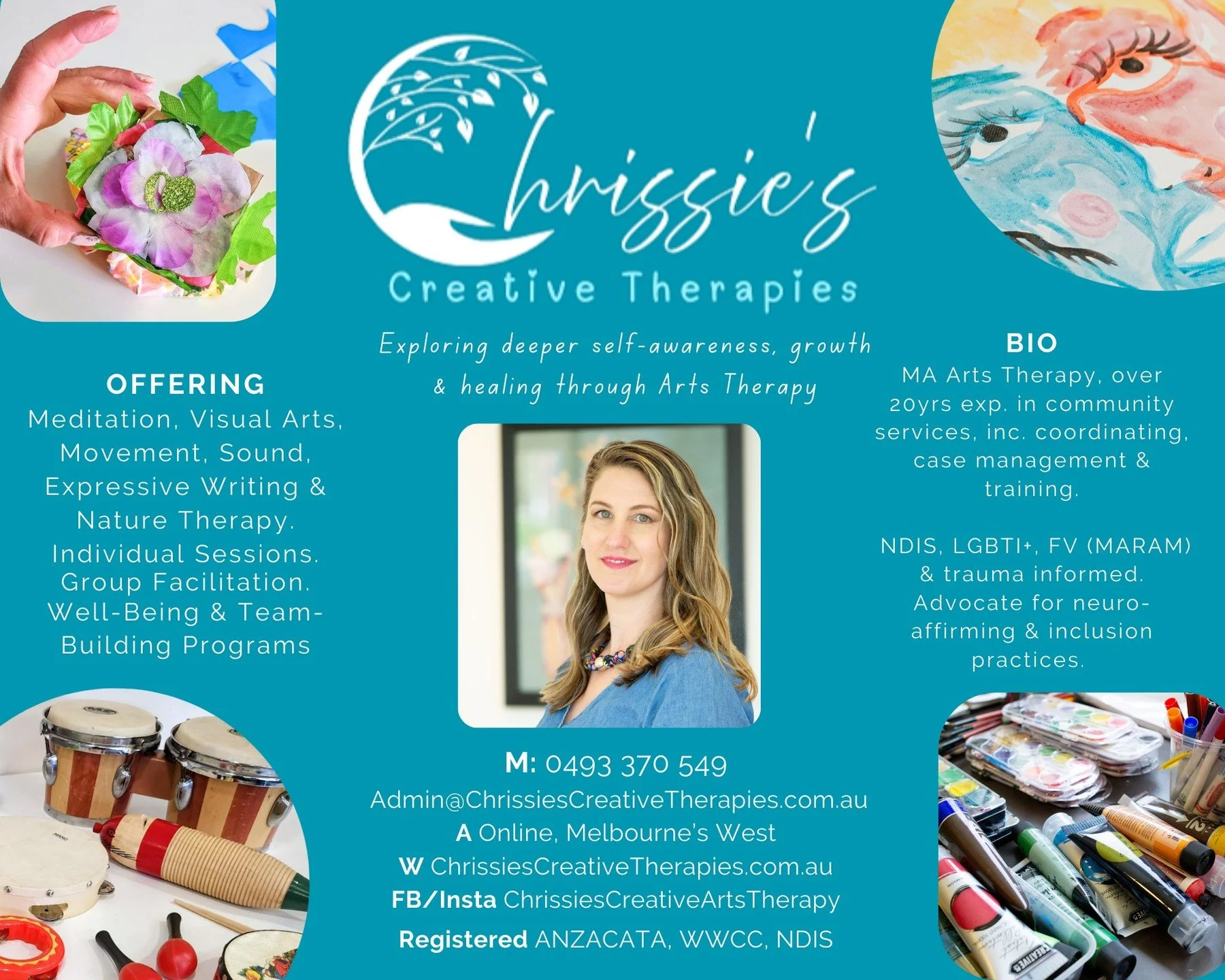 Holding a Masters in Arts Therapy, BA in Community Development, Dip. in Counselling, Cert. 3 in Visual Arts, and Cert. IV in Training & Assessment, I bring extensive professional qualifications to her arts therapy and wellbeing practice.Over 20 yearsโ experience in community services, including coordinating programs and projects, case management, and training. Focus areas have included Disability, Family Services, Dept. of Education, Child Protection, Employment (DEEWR), and Adolescents.
